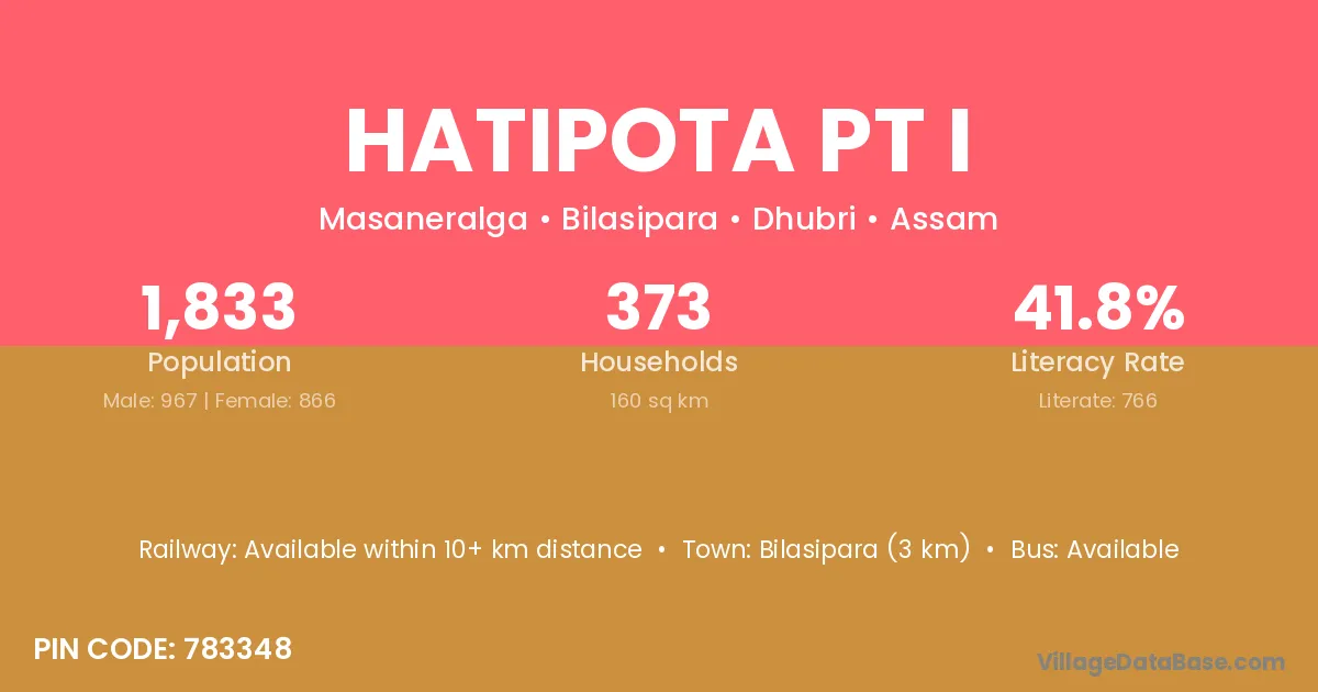 According to Census 2011 information, the village code of Hatipota Pt I village is 783348.