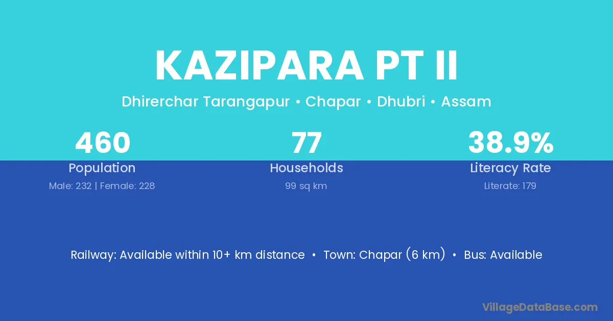 Kazipara Pt Ii village has a total population of 460 people, of which 232 are males and 228 are females.