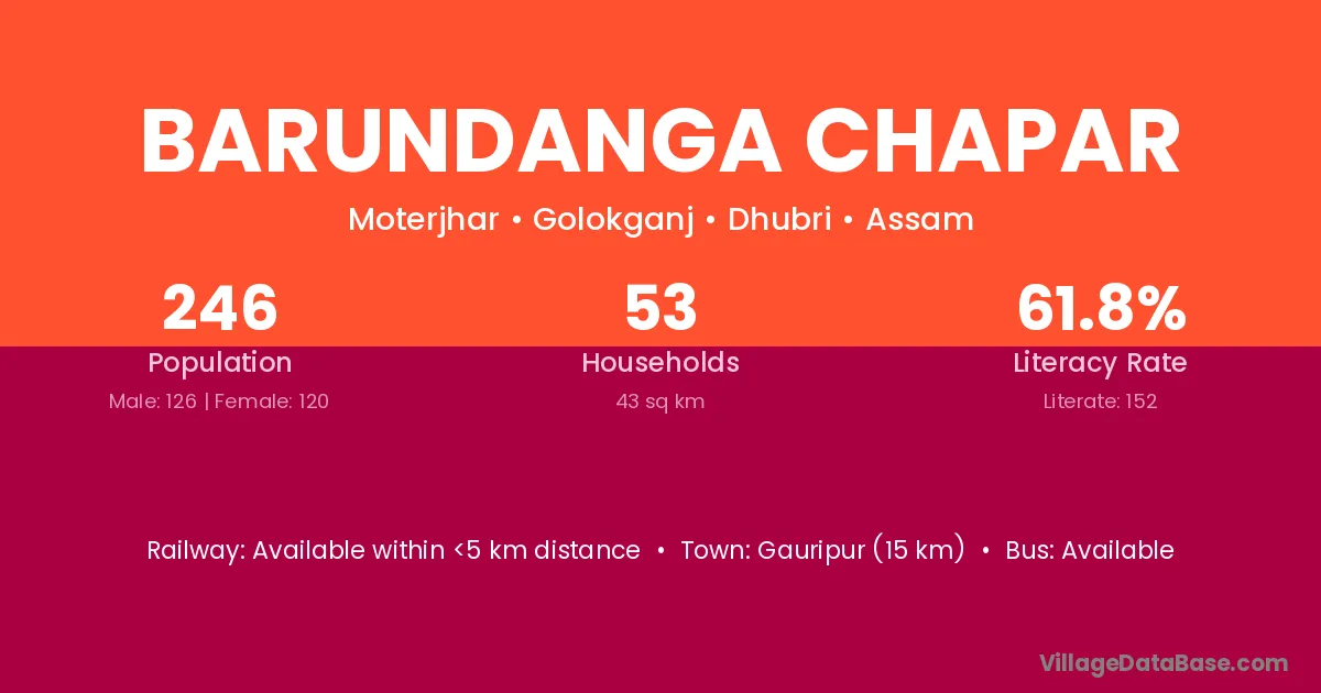 Barundanga Chapar village has a total population of 246 people, of which 126 are males and 120 are females.