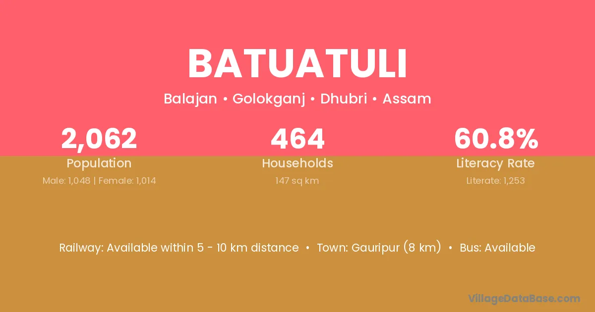 Gauripur (8 km) is the nearest town to Batuatuli village for major economic activities and is located approximately 8 km away.