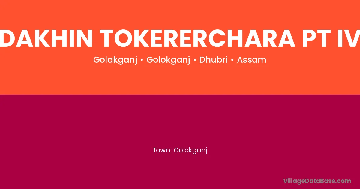 Dakhin Tokererchara Pt Iv village is located in the Golokganj Subdivision of the Dhubri district in Assam .