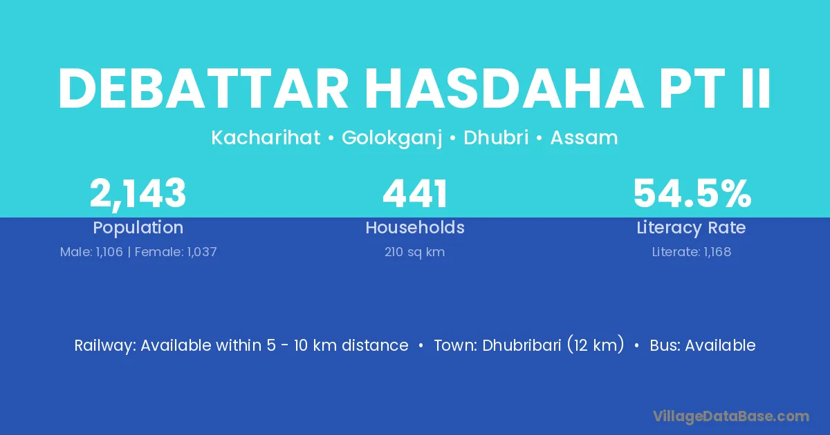 Dhubribari (12 km) is the nearest town to Debattar Hasdaha Pt Ii village for major economic activities and is located approximately 12 km away.