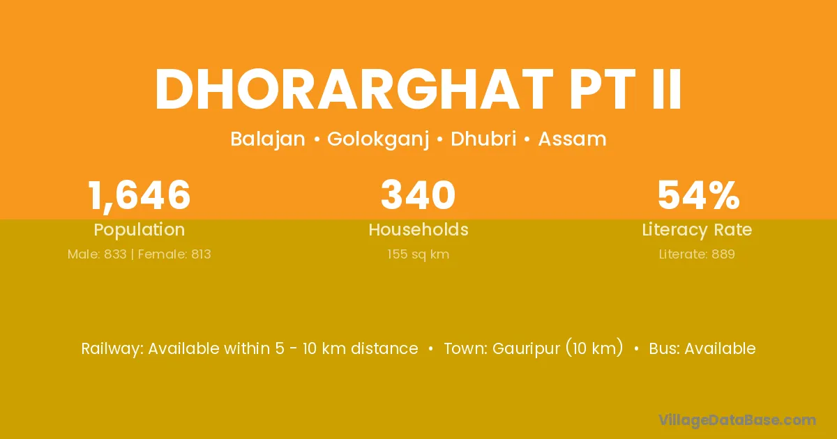 Dhorarghat Pt Ii village has a total population of 1,646 people, of which 833 are males and 813 are females.