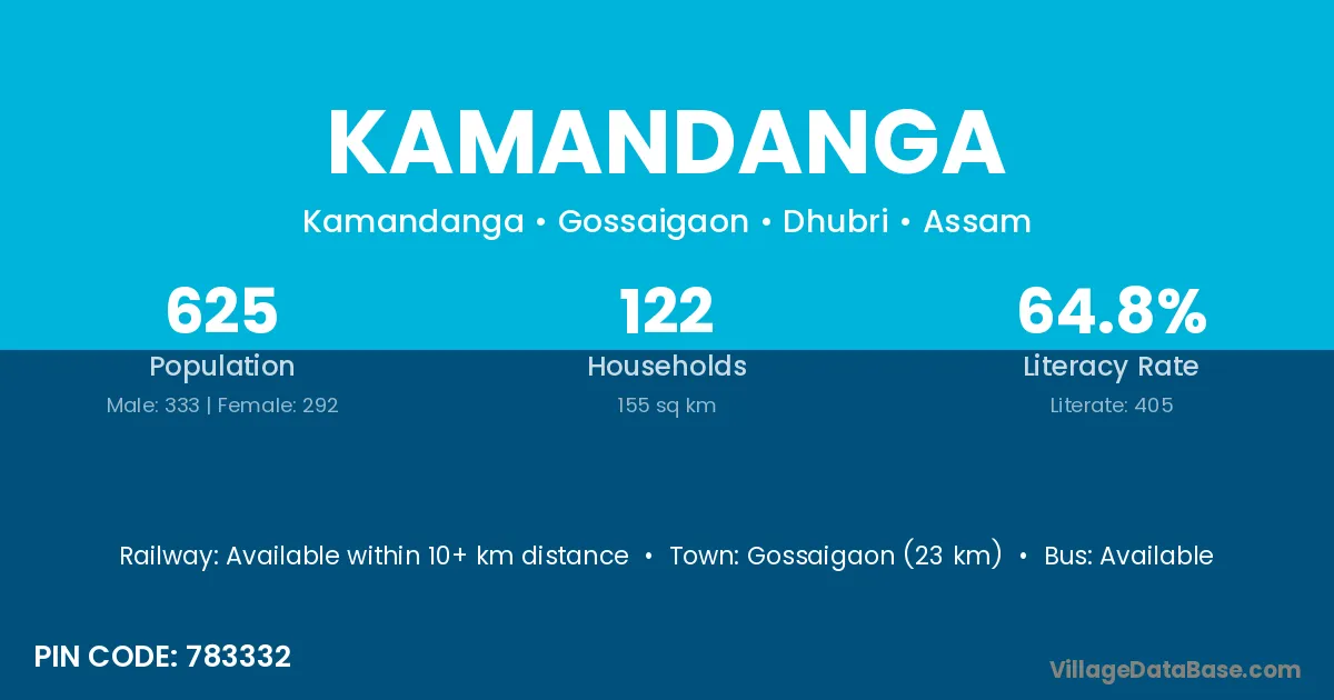 Gossaigaon (23 km) is the nearest town to Kamandanga village for major economic activities and is located approximately 23 km away.