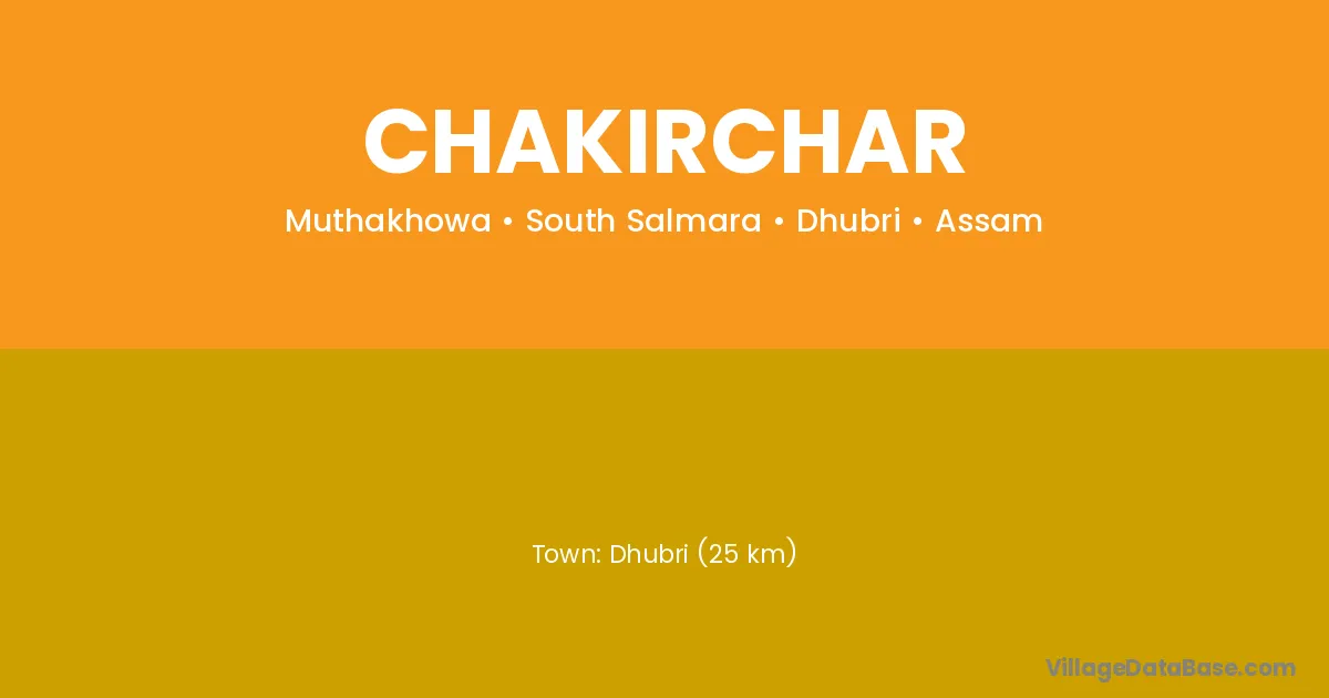 Dhubri (25 km) is the nearest town to Chakirchar village for major economic activities and is located approximately 25 km away.