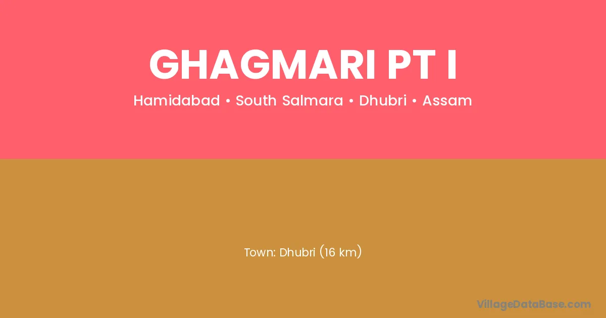 Dhubri (16 km) is the nearest town to Ghagmari Pt I village for major economic activities and is located approximately 16 km away.