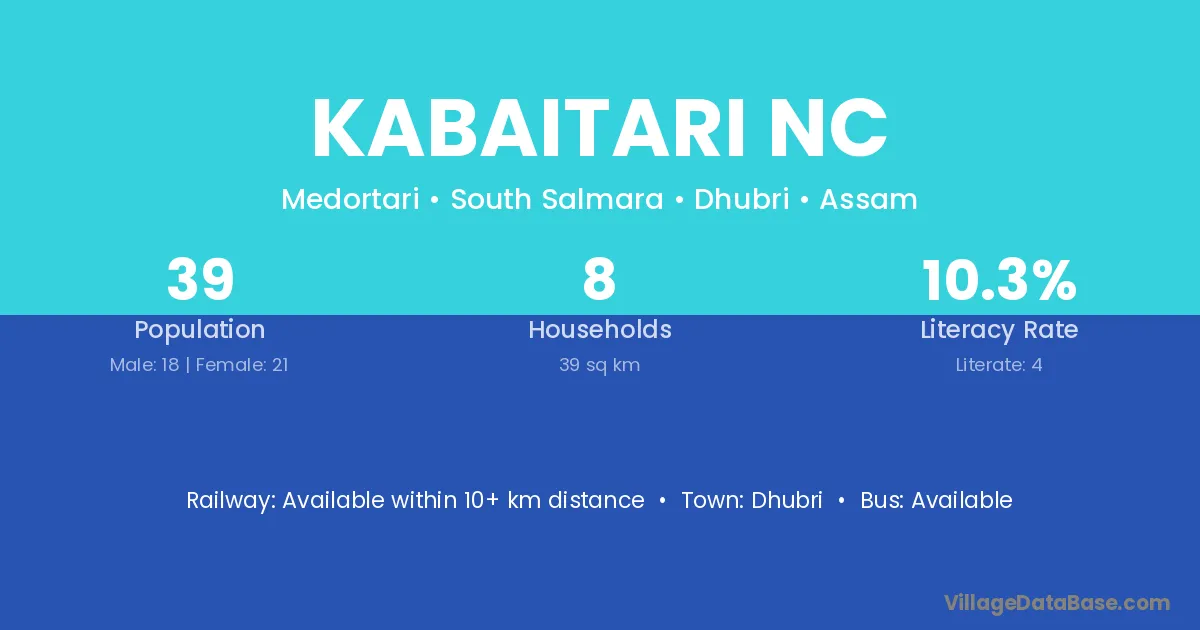 Dhubri is the nearest town to Kabaitari Nc village for major economic activities
