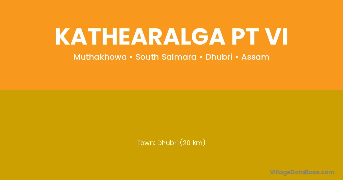 Dhubri (20 km) is the nearest town to Kathearalga Pt Vi village for major economic activities and is located approximately 20 km away.