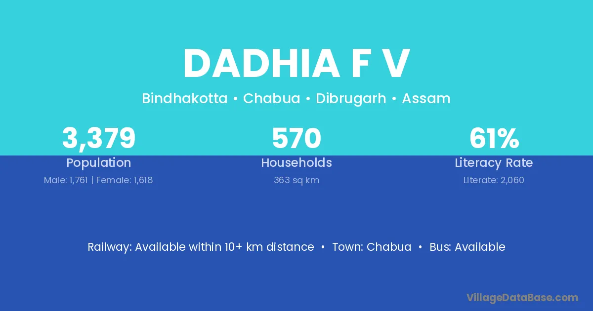 Chabua is the nearest town to Dadhia F V village for major economic activities