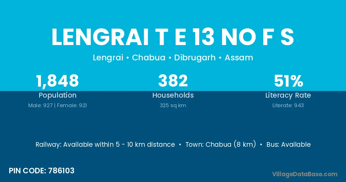 Lengrai T E 13 No F S village has a total population of 1,848 people, of which 927 are males and 921 are females.