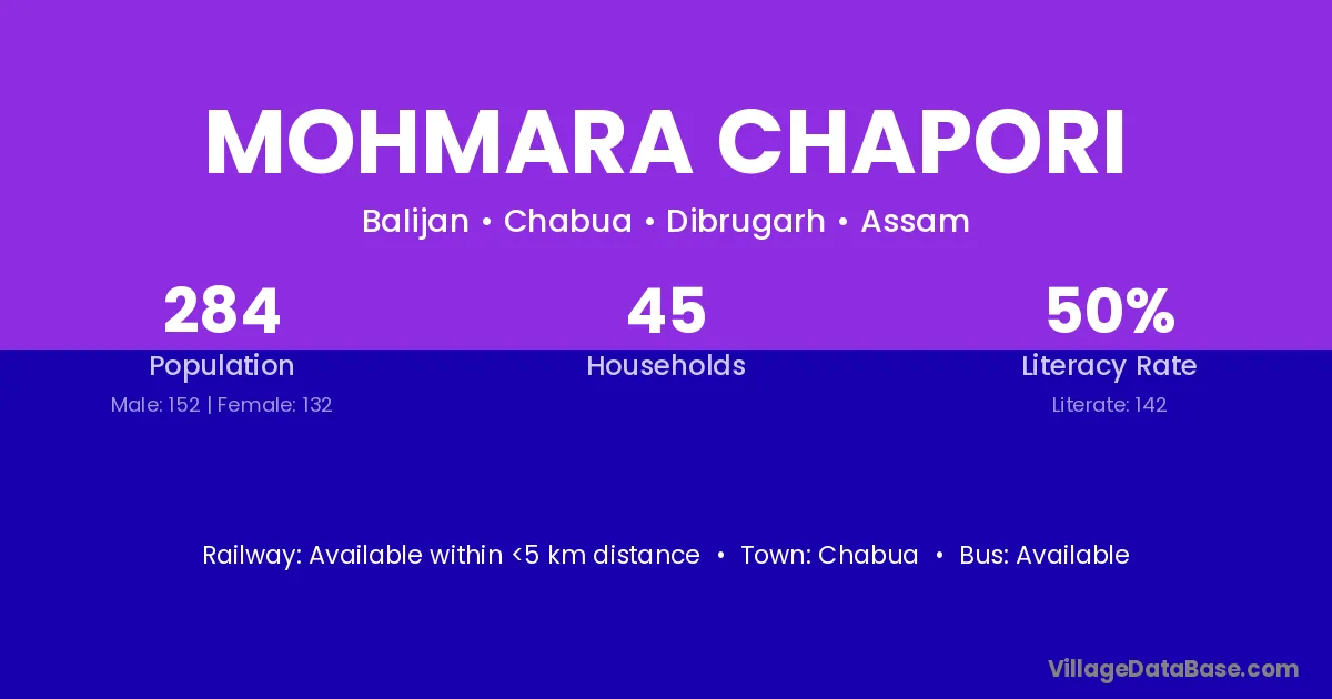 Mohmara Chapori village has a total population of 284 people, of which 152 are males and 132 are females.