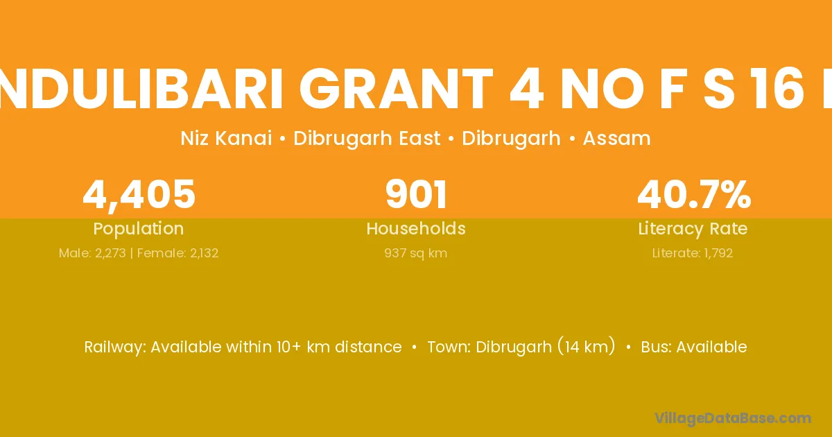 Kandulibari Grant 4 No F S 16 Nlr village has a total population of 4,405 people, of which 2,273 are males and 2,132 are females.