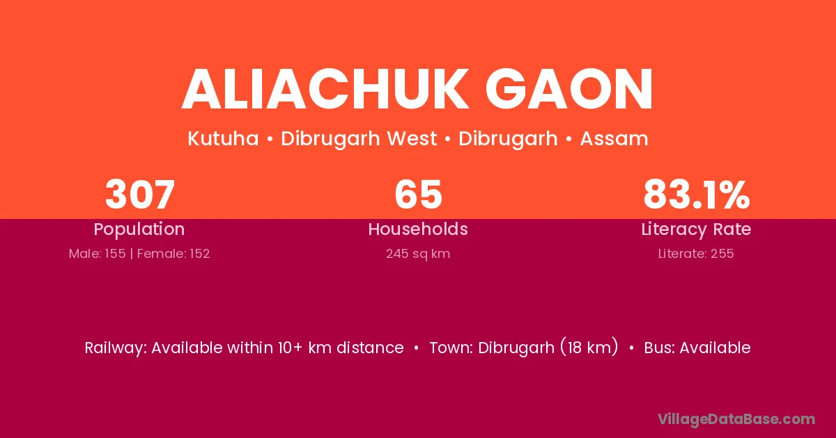 Aliachuk Gaon village has a total population of 307 people, of which 155 are males and 152 are females.