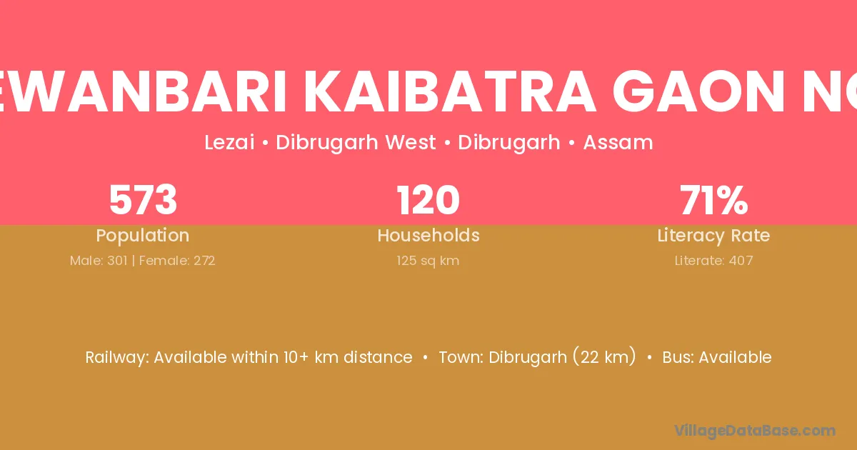 Dewanbari Kaibatra Gaon No 1 village has a total population of 573 people, of which 301 are males and 272 are females.