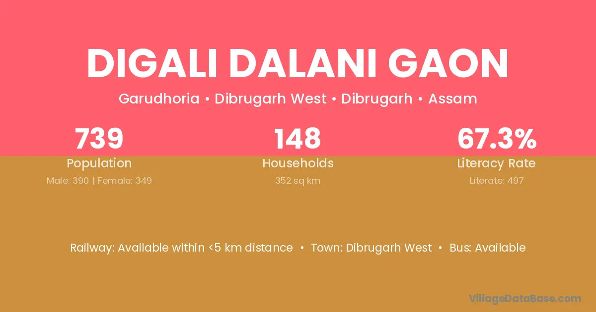 Digali Dalani Gaon village has a total population of 739 people, of which 390 are males and 349 are females.