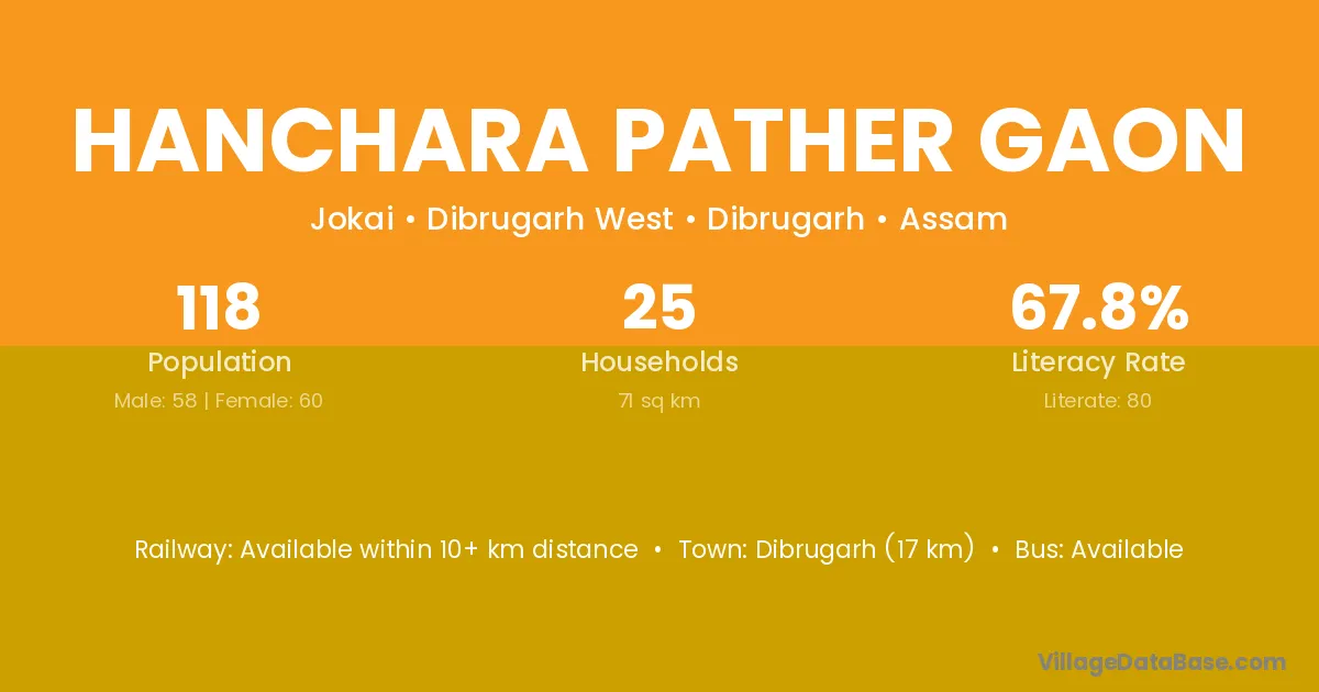 Hanchara Pather Gaon village has a total population of 118 people, of which 58 are males and 60 are females.