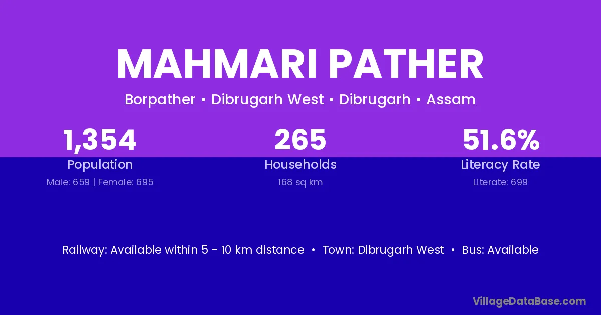 Mahmari Pather village has a total population of 1,354 people, of which 659 are males and 695 are females.