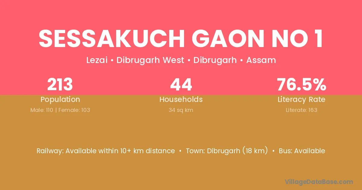 Sessakuch Gaon No 1 village has a total population of 213 people, of which 110 are males and 103 are females.