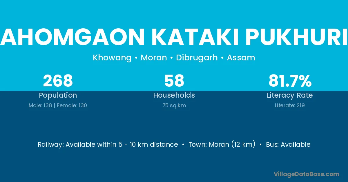 Ahomgaon Kataki Pukhuri village has a total population of 268 people, of which 138 are males and 130 are females.