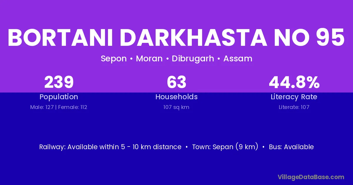Bortani Darkhasta No 95 village is located in the Moran Subdivision of the Dibrugarh district in Assam .