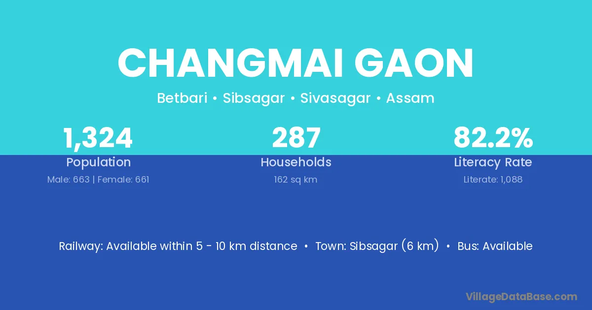 Moran (20 km) is the nearest town to Changmai Gaon village for major economic activities and is located approximately 20 km away.