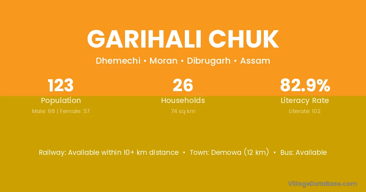 Demowa (12 km) is the nearest town to Garihali Chuk village for major economic activities and is located approximately 12 km away.