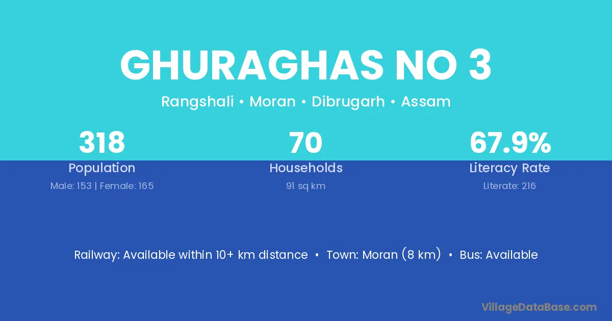 Moran (8 km) is the nearest town to Ghuraghas No 3 village for major economic activities and is located approximately 8 km away.