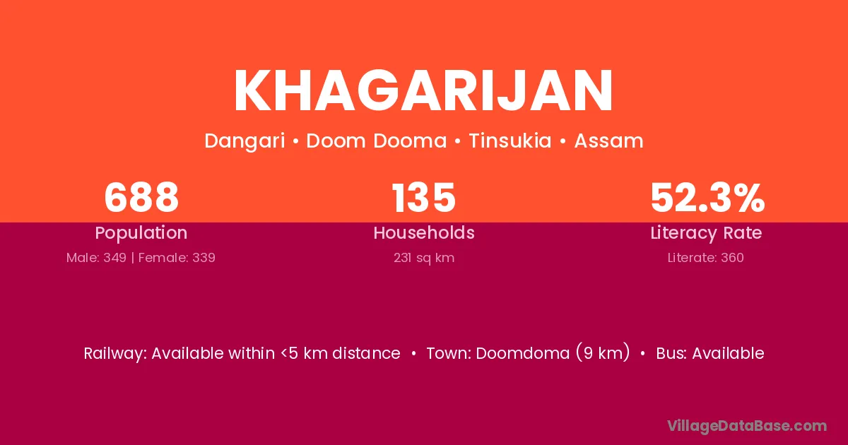 Moran (16 km) is the nearest town to Khagarijan village for major economic activities and is located approximately 16 km away.