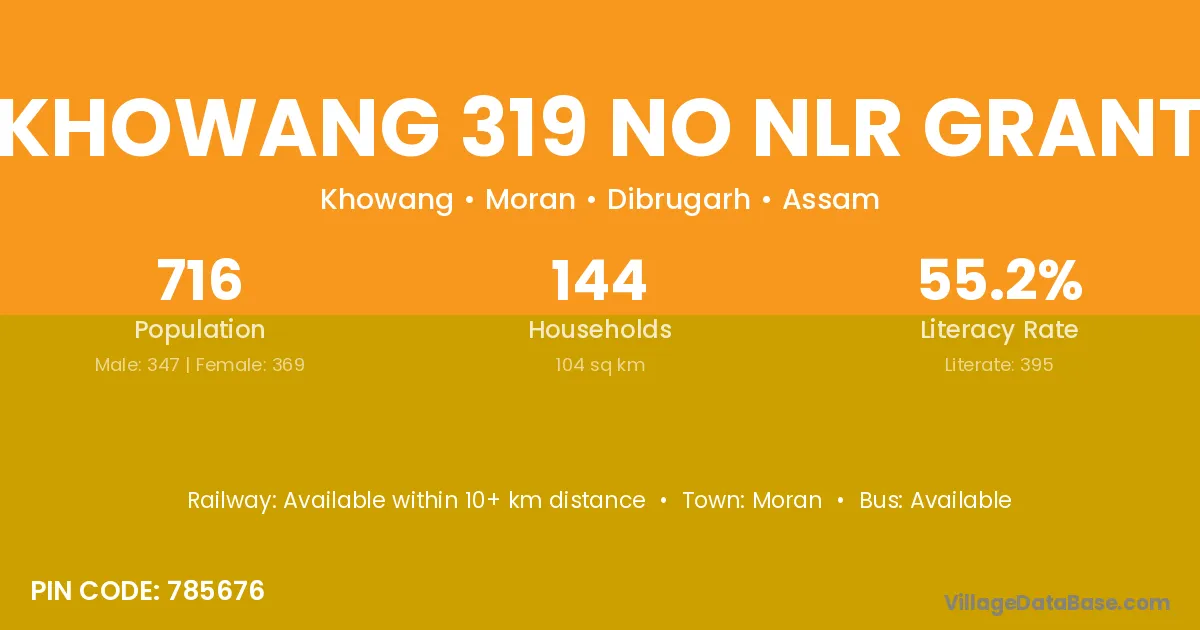 Khowang 319 No Nlr Grant village has a total population of 716 people, of which 347 are males and 369 are females.