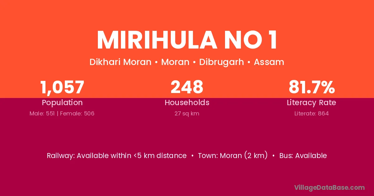 Mirihula No 1 village has a total population of 1,057 people, of which 551 are males and 506 are females.