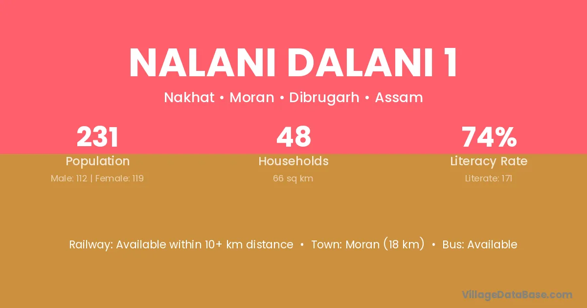 Nalani Dalani 1 village has a total population of 231 people, of which 112 are males and 119 are females.