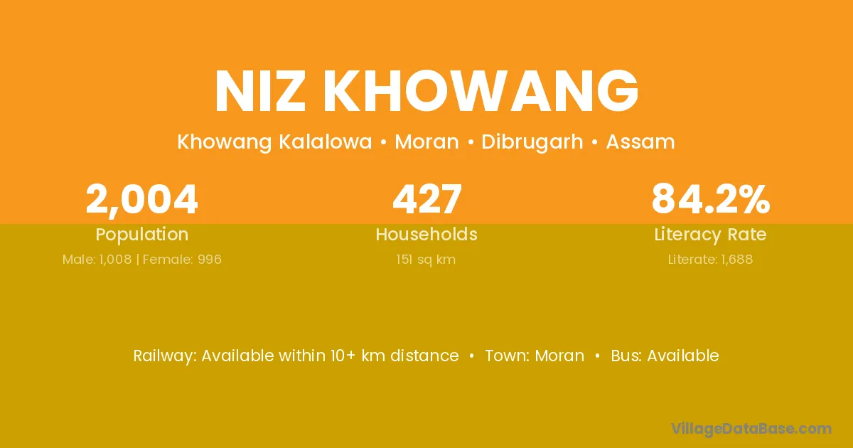 Moran is the nearest town to Niz Khowang village for major economic activities