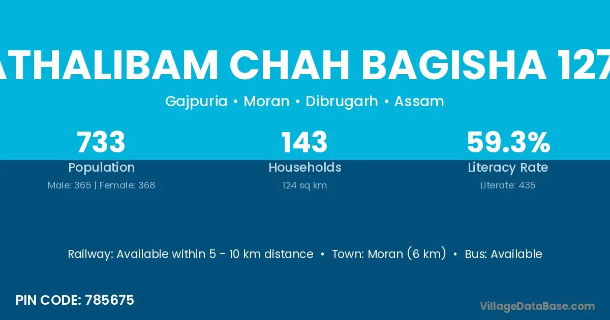 Moran (6 km) is the nearest town to Pathalibam Chah Bagisha 127 N village for major economic activities and is located approximately 6 km away.