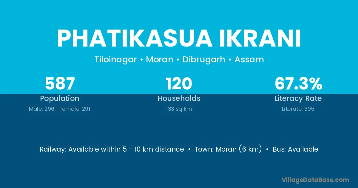 Phatikasua Ikrani village has a total population of 587 people, of which 296 are males and 291 are females.