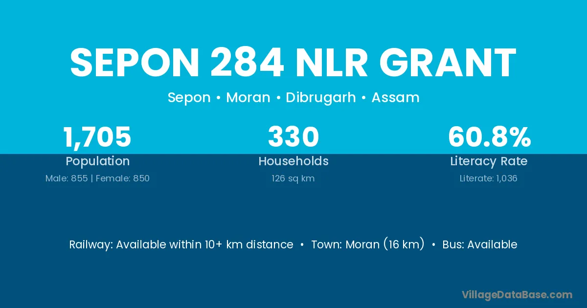 Sepon 284 Nlr Grant village has a total population of 1,705 people, of which 855 are males and 850 are females.