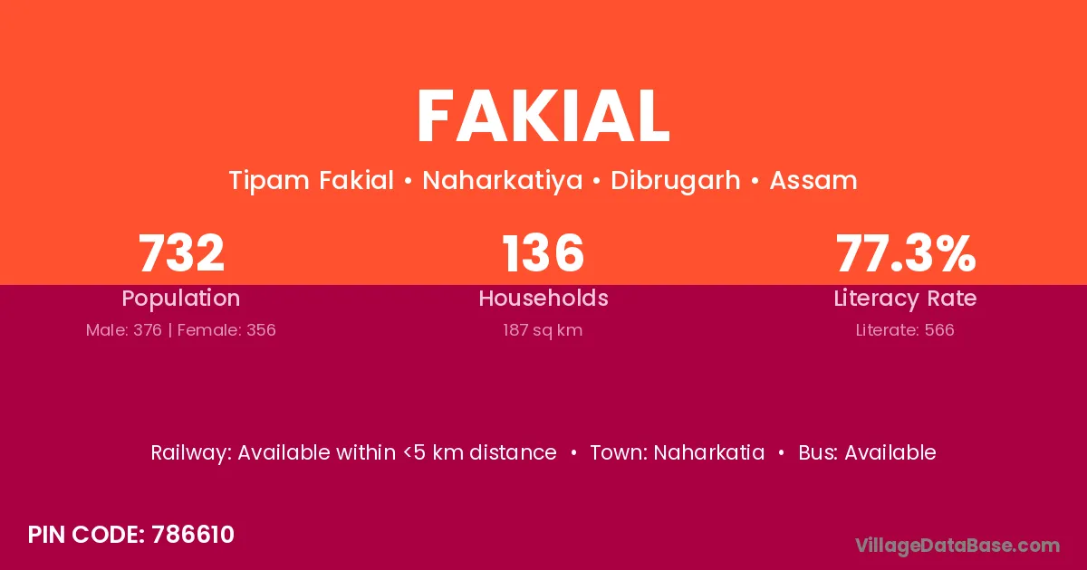 Naharkatia is the nearest town to Fakial village for major economic activities