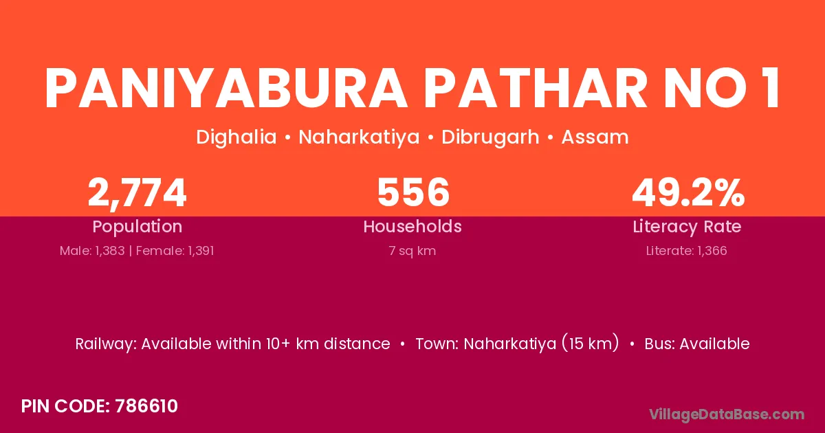 Paniyabura Pathar No 1 village has a total population of 2,774 people, of which 1,383 are males and 1,391 are females.