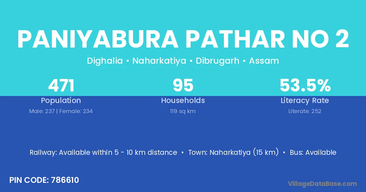 Paniyabura Pathar No 2 village has a total population of 471 people, of which 237 are males and 234 are females.
