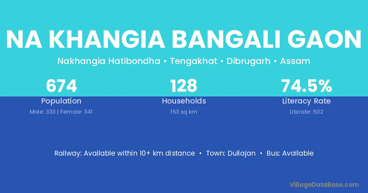 Na Khangia Bangali Gaon village has a total population of 674 people, of which 333 are males and 341 are females.