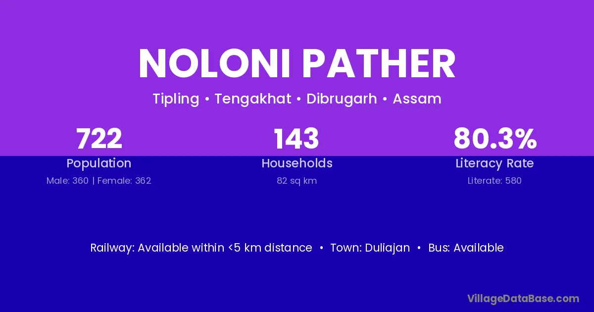 Duliajan is the nearest town to Noloni Pather village for major economic activities