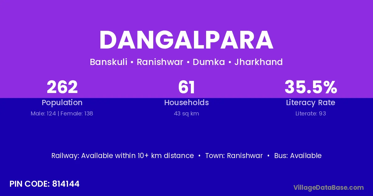 Dangalpara village has a total population of 574 people, of which 302 are males and 272 are females.