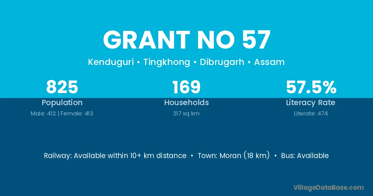 Grant No 57 village has a total population of 825 people, of which 412 are males and 413 are females.