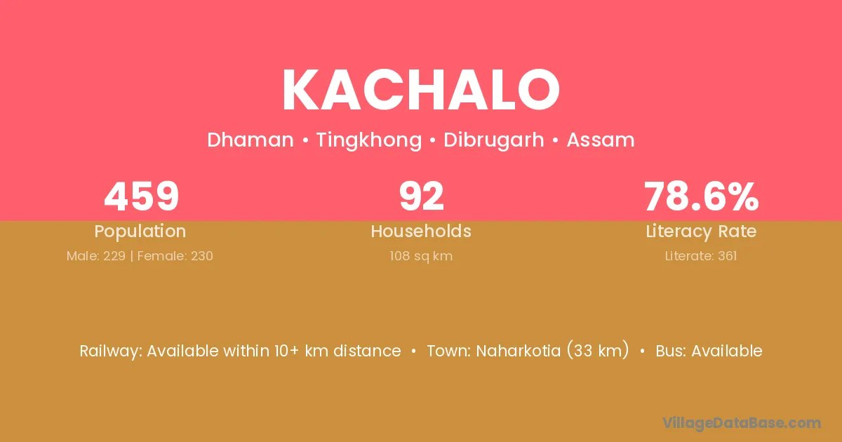 Kachalo village has a total population of 459 people, of which 229 are males and 230 are females.