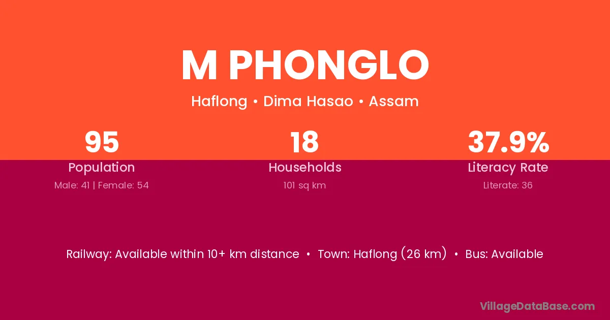 Haflong (26 km) is the nearest town to M Phonglo village for major economic activities and is located approximately 26 km away.