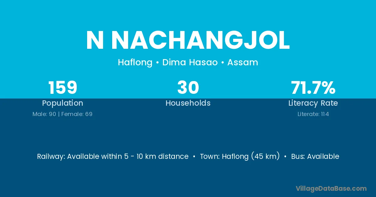 Haflong (45 km) is the nearest town to N Nachangjol village for major economic activities and is located approximately 45 km away.
