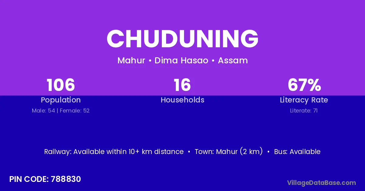 Chuduning village is located in the Mahur Subdivision of the Dima Hasao district in Assam .