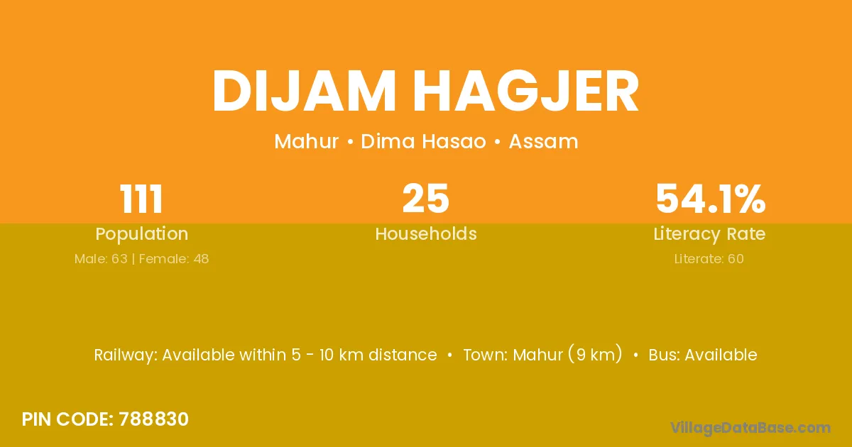 Dijam Hagjer village is located in the Mahur Subdivision of the Dima Hasao district in Assam .