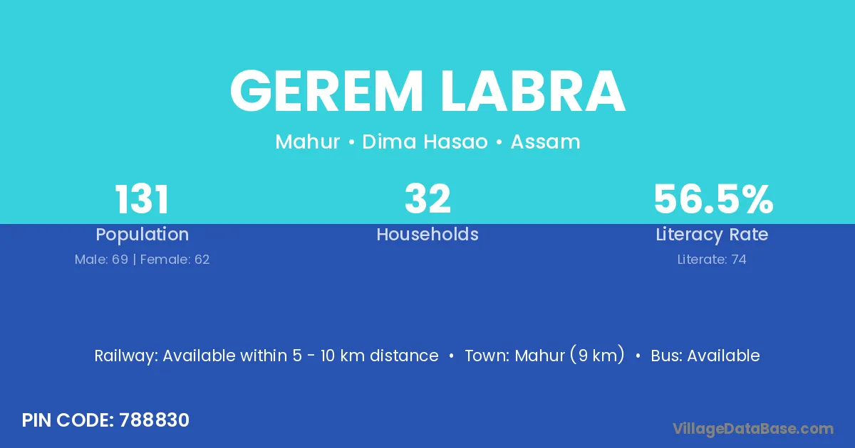 Gerem Labra village is located in the Mahur Subdivision of the Dima Hasao district in Assam .