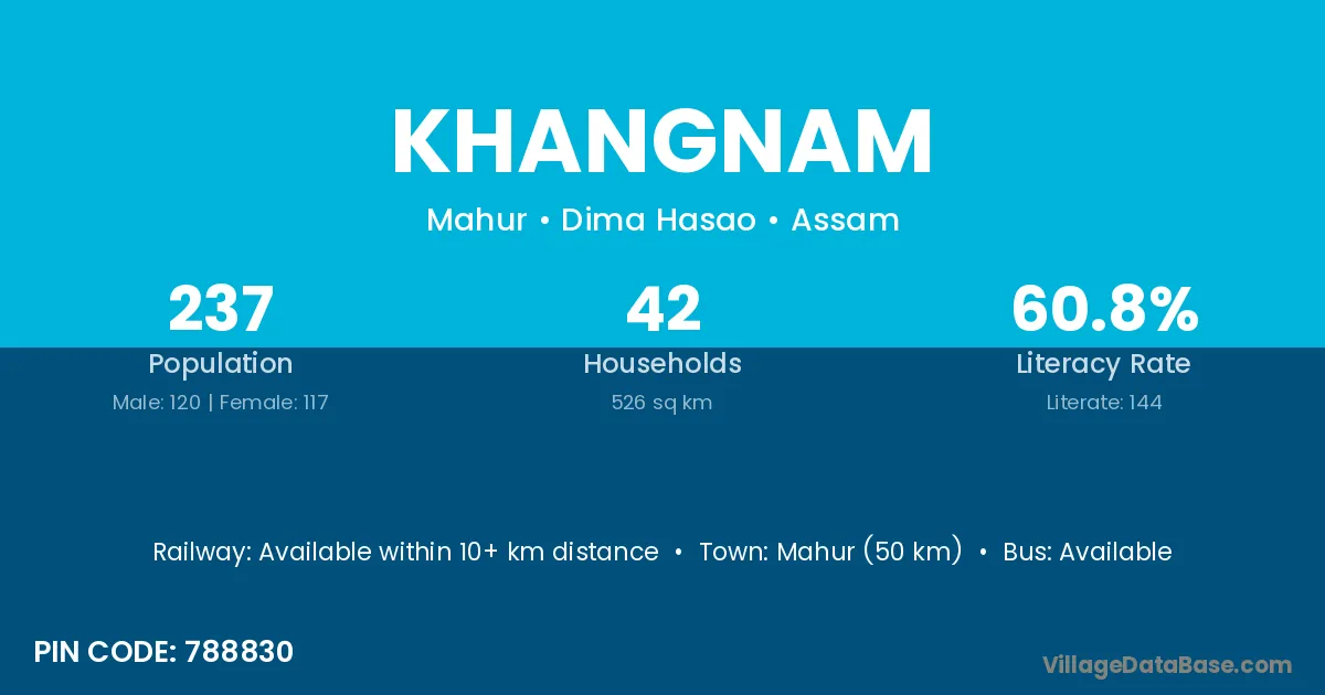 Mahur (50 km) is the nearest town to Khangnam village for major economic activities and is located approximately 50 km away.