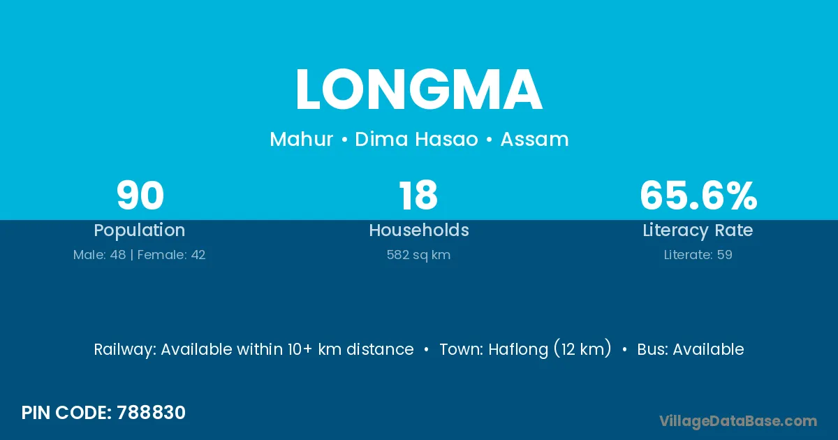 Haflong (12 km) is the nearest town to Longma village for major economic activities and is located approximately 12 km away.